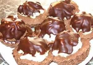 Az összes hozzávalóból tésztát gyúrunk. Vékony rétegben belenyomkodjuk a kosárka formába. A formákat nem kell kikenni. Megsütjük 180 fokon és még melegen kivesszük a formából. A kihült kosárkákat megtöltjük habnyomózsák segítségéve a krémmel. A krémhez a tojást és a cukrot kikeverjük gőz fülütt amíg be nem sürüsödik. Ha kiéült puha vajjal kikeverjük. A tetejét csokoládéba mártjuk. Karácsonyi asztalra szoktuk készíteni.